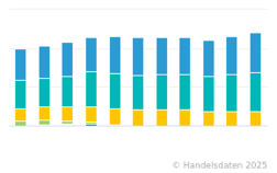 Die Zeitreihe zeigt den Nettoumsatz des schwedischen Baumarktunternehmens Clas Ohlson weltweit in den Jahren 2014/2015 bis 2024/2025 nach Regionen (in Millionen Schwedischen Kronen) auf. Im Geschäftsjahr 2023/2024 erzielte die Baumarktkette Clas Ohlson in Norwegen einen Umsatz von rund 4,2 Milliarden Schwedischen Kronen. In seinen Märkten vertreibt die Handelsgruppe Elektrogeräte, Heimwerker- und Baubedarf, Spielzeuge, Einrichtungsgegenstände sowie Geschenke und Accessoires.