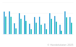 Die Statistik zeigt die Anzahl der Hornbach-Baumärkte in Europa in den Geschäftsjahren 2023/2024 und 2024/2025 nach Ländern. Hornbach betrieb zum Ende des Geschäftsjahres 2023/2024 insgesamt 171 Baumärkte, davon 98 in Deutschland.