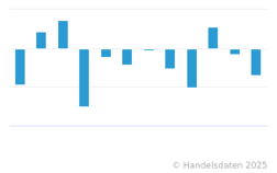 Die Statistik zeigt die monatliche Absatzveränderung bei Büchern im deutschen Sortimentsbuchhandel im Zeitraum von August 2024 bis August 2025 im Vergleich zum jeweiligen Vorjahresmonat (in Prozent). Im August 2025 lag der Absatz mit Büchern im Sortimentsbuchhandel 8,6 Prozent unter dem Niveau von August 2024.