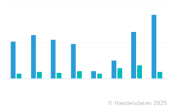 Die Statistik zeigt die Import- und Exportmengen von Feuerwerkskörpern nach bzw. aus Deutschland in den Jahren 2017 bis 2024 in Tausend Tonnen. Im Jahr 2023 wurden 40.596 Tonnen Feuerwerkskörper nach Deutschland eingeführt und rund 10.700 Tonnen aus Deutschland ausgeführt.