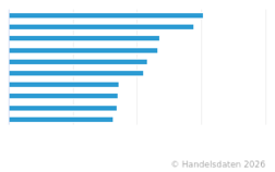 Die Statistik zeigt die Top 10 der deutschen Einkaufsstraßen nach Passantenfrequenz im Januar 2026. Platz 1 im Ranking belegt in diesem Monat die Schadowstraße (Südwest), Düsseldorf mit insgesamt 2.047.091 Passant:innen. Die Kaufingerstraße, München, folgt auf Platz 2 mit 1.846.920 Passant:innen.