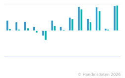 Die vorliegende Statistik zeigt die Umsatzentwicklung im Einzelhandel mit Unterhaltungselektronik in Deutschland vom 1. Quartal 2019 bis zum 4. Quartal 2025 zum jeweiligen Vorjahresquartal (in Prozent). Die Unternehmen im Einzelhandel mit Unterhaltungselektronik in Deutschland setzten im 4. Quartal 2025 nach vorläufigen Ergebnissen des Statistischen Bundesamtes real 1,8 Prozent und nominal 4,7 Prozent weniger um als im 4. Quartal 2024.