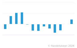 Die vorliegende Grafik zeigt die monatliche Entwicklung der Verbraucherpreise für Obst in Deutschland von Januar 2025 bis Januar 2026 jeweils zum Vorjahresmonat (in Prozent).