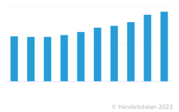 Die Statistik zeigt die Entwicklung der Einzelhandelsumsätze der Filialen des schwedischen Lebensmittelhändlers Axfood in den Jahren 2016 bis 2024 nach Vertriebslinien (in Millionen Schwedischen Kronen) auf. Die 68 von Axfood in Regie betriebenen Supermärkte Hemköp erzielten 2024 einen Einzelhandelsumsatz von 7,9 Milliarden SEK (rund 689 Millionen Euro).