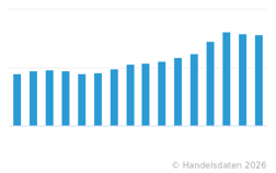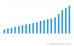 Die Statistik zeigt den Nettoumsatz der Discountmärkte Biedronka in Polen in den Jahren 2005 bis 2025 (in Milliarden Euro). Die Discountmärkte Biedronka der portugiesischen Handelsgruppe Jerónimo Martins erwirtschafteten im Jahr 2024 einen Umsatz von rund 23,57 Milliarden Euro.