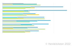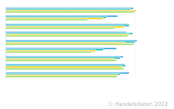 Die Statistik zeigt den Anzahl der vegetarischen bzw. veganen Artikel im Sortiment der Aldi Nord-Filialen in den Jahren 2016 bis 2022 nach Ländern. Aldi Nord führt im Jahr 2021 länderübergreifend insgesamt 872 als vegetarisch und/oder vegan gekennzeichnete Artikel im Standardsortiment, dies sind 239 Artikel mehr als in 2020.