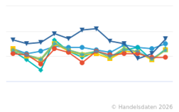 Die Statistik zeigt die prozentuale Umsatzentwicklung der Betriebsformen im deutschen Lebensmitteleinzelhandel und Drogeriefachhandel in den Monaten Januar bis Dezember 2025 kumuliert gegenüber dem Vorjahreszeitraum. Im Zeitraum von Januar bis Dezember 2025 verzeichneten die Discounter ein Umsatzplus von 5 Prozent im Vergleich zum Vorjahreszeitraum.