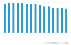 Die vorliegende Grafik zeigt die Entwicklung der Konsumausgaben der privaten Haushalte in Deutschland für Schuhe in den Jahren 2019 bis 2024 in jeweiligen Preisen in Milliarden Euro auf. Die Privathaushalte in Deutschland haben im Jahr 2021 insgesamt 15,107 Milliarden Euro für Schuhe ausgegeben. Die Konsumausgaben für Schuhe beinhalten die Ausgaben für Schuhe und andere Fußbekleidung sowie Reparaturen und Mieten von Schuhen.